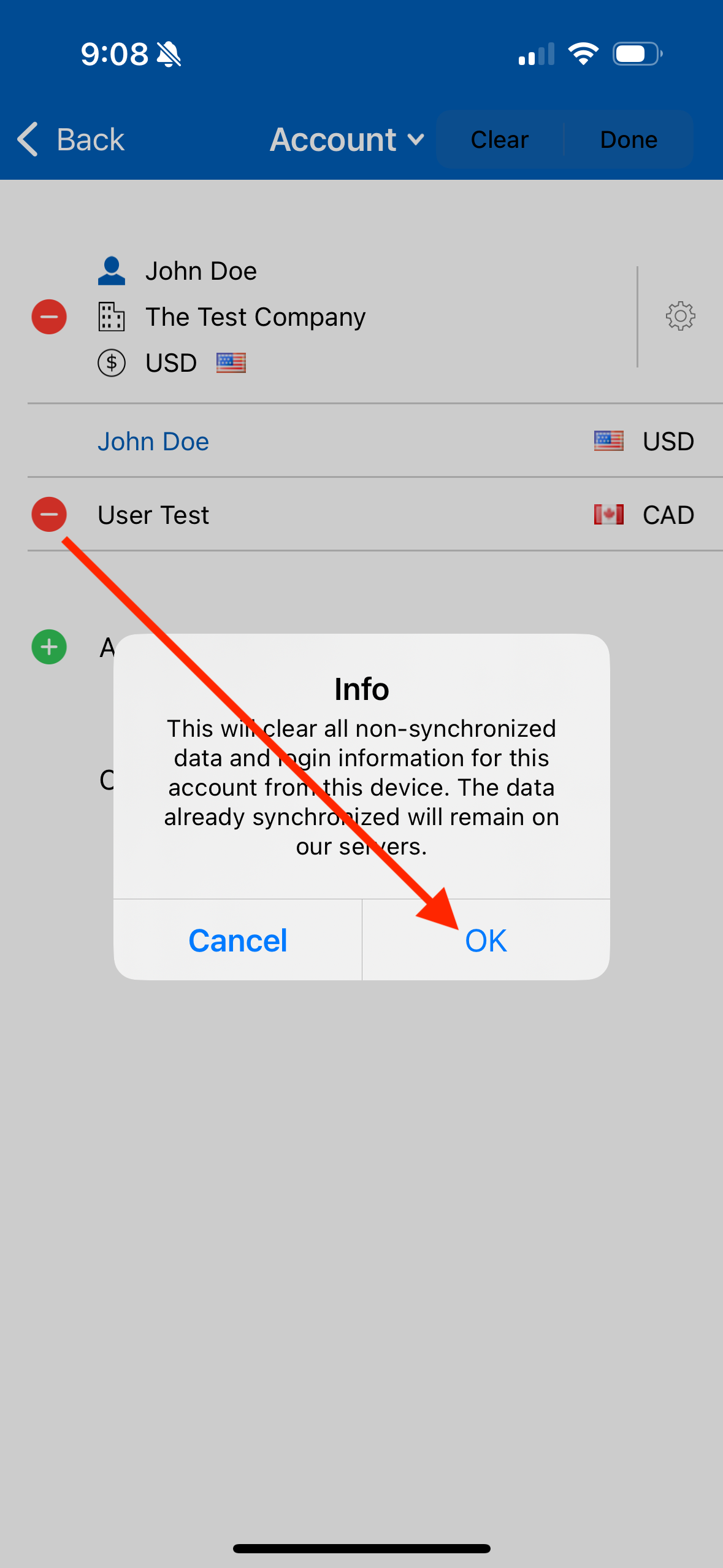 If you are accessing your Nexonia account using the mobile application and would like to remove your account from the app, you will have the option to erase your local account data. To do this, log in to your Nexonia account on the mobile app.