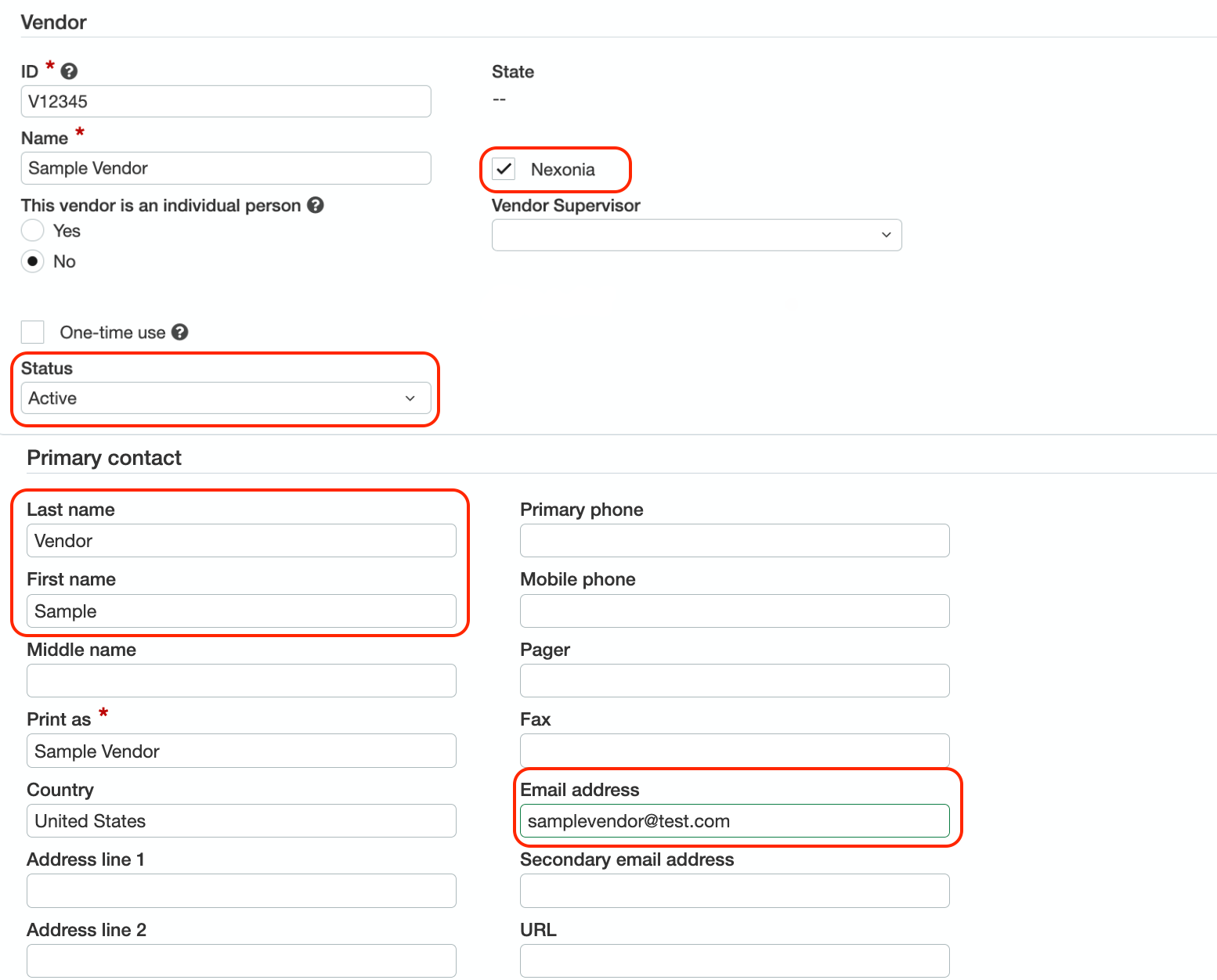 In order for Nexonia to generate a user profile, the following would need to be part of the Intacct Vendor record: