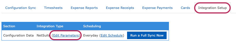 Step 2: Under the Integration Setup tab, select Edit Parameters.